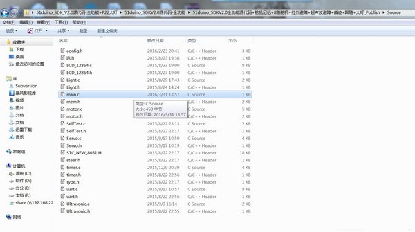 3、把生成的main.c文件拷贝到51duino_SDK_V2.0工程的Source文件夹中,替换原有的main.c文件。