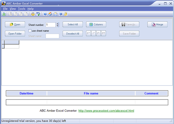 ABC Amber Excel Converter在主窗口中显示文件内容,并允许您选择单个行进行处理。您还可以指定工作表编号和使用工作表名称,以及包含或排除列。另外,您可以查看文件属性,并将应用程序最小化到系统任务栏区域。