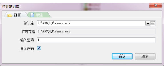 1、双击执行d:MKSJGJMKSJGJ.exe,输入示例笔记库的登录口令(数字1),然后点“确认”;
