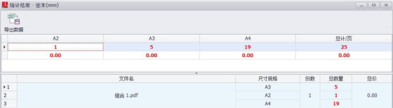 3、统计结果显示A2:1张,A3:5张,A4:19张。