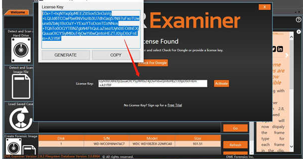 6、双击打开DVR Examiner软件,软件会自动弹出注册界面,将注册机中的注册码复制到软件对应位置,点击Activate;