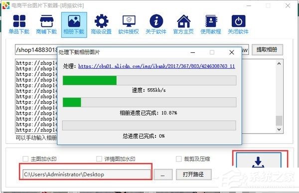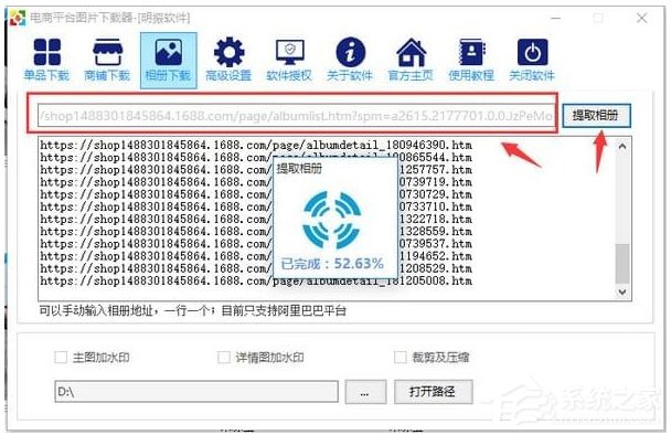 2、把公司相册的链接复制到电商平台图片下载器软件中的相册下载框;