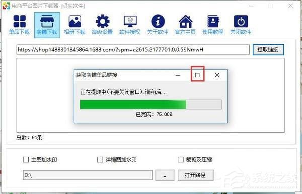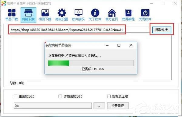 2、把首页的链接复制到软件的商铺下载的链接框中,并单击“提取链接”按钮;