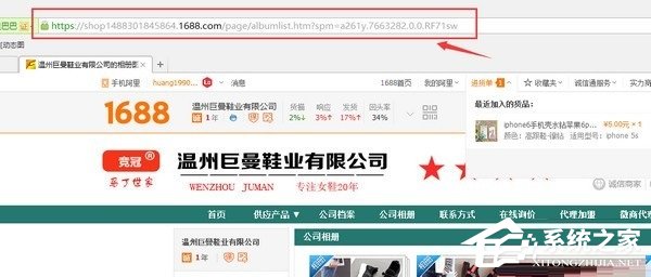 1、进入阿里巴巴、天猫、或淘宝要下载的商铺首页,然后复制首页的链接;