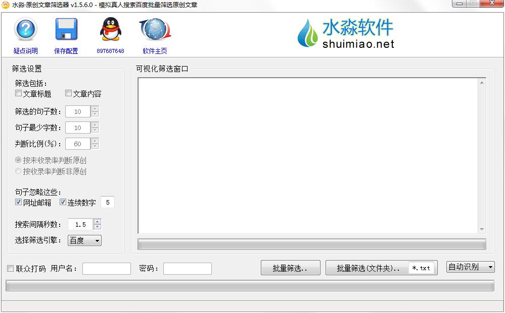 水淼原创文章筛选器是一款能够模拟真人搜索百度等引擎判断文章原创性的筛选工具,效果取决于设定的判断参数,通过抽样检测,模拟真人搜索,支持多种搜索引擎,使用软件时一般抽10句,然后设定判断比例60%,(按未收录率)也就是10句里有6句没有收录就判断为原创。