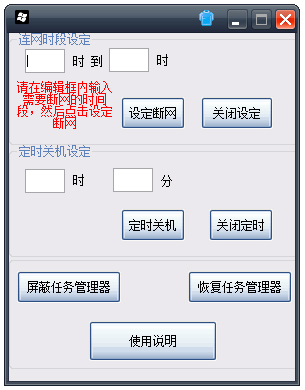 定时断网工具是一款便捷实用、可以帮助用户定时断网的实用软件,这款软件可以帮助用户定时断开网络连接。如果各位朋友想定时关闭网络连接或者定时关机不给孩子玩电脑,那么这款软件都可以帮助到您,有需要的朋友快来试试这款定时断网软件吧!