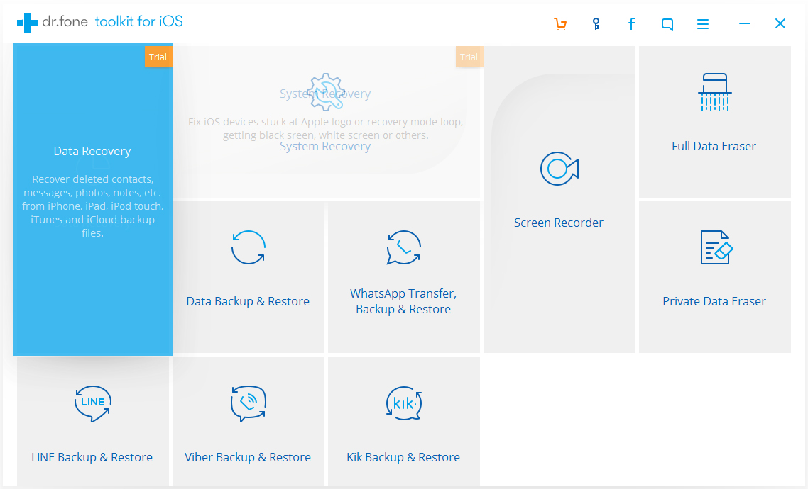 wondershare dr.fone是世界排名第一的iPhone,iPad和iPod Touch等IOS设备数据恢复软件,可找回由于意外或故意删除,iOS设备损坏或iOS的崩溃造成丢失的数据,非常专业。