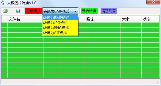 太极图片转换器是一款非常好用的图片格式转换软件,能够帮助用户轻松转换jpg、png、jpeg、bmp等图片格式,还支持批量转换图片格式,可以查看格式、日期、路径、大小,适合个人使用,适合经常编辑图片的朋友使用,软件界面美观,便捷好用,并且绿色免安装,使用免费。