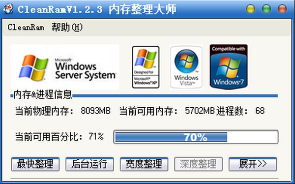 想要让电脑运行得更稳定、更流畅,就要经常清理电脑垃圾,释放电脑内存,这里就可以试试Cleanram内存整理大师,这是一款方便实用可以优化整理电脑内存的软件,体积小巧,操作便捷,还可以在后台运行时自动清理内存,有效的满足使用者的需求。