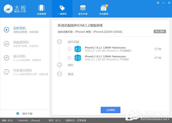 4、点击【立即刷机】后,首先会自动下载选择的固件,当固件下载100%后,就会开始执行刷机操作;