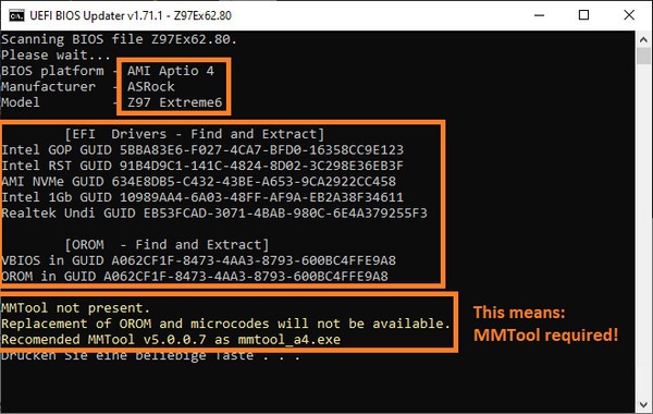 UEFI BIOS Updater(主板bios更新软件),执行更新AMI UEFI BIOS的OROM/UEFI模块,很小众的BIOS修改软件。因为用到的人不多,所以名气不大。但是绝对是BIOS修改界的老大。很多主板BIOS,时间久了以后,厂家就停止更新了,这款软件可以让你自己更新、修改BIOS内的所有模块。比如更新CPU微码,增加NVME功能等等。