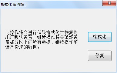 注:格式化按钮会清空U盘中所有资料,请不要轻易去尝试;