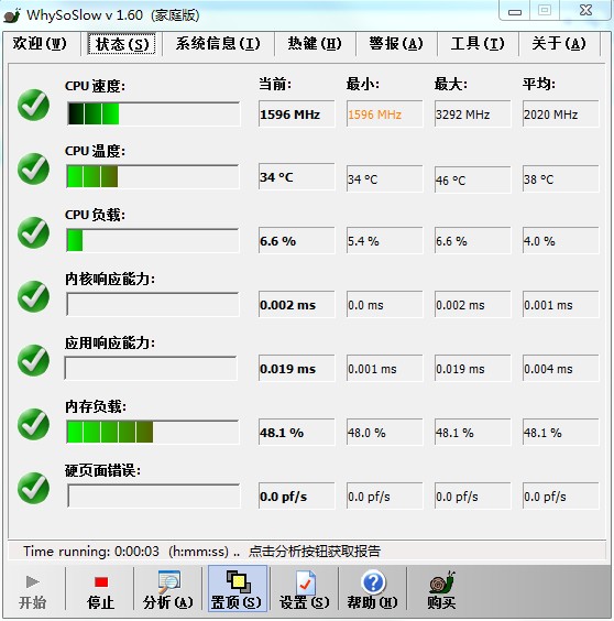 一、下载打开软件,点击左下角的开始即可对系统进行监视。