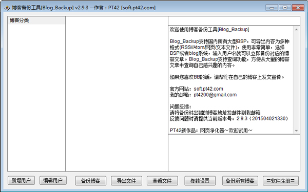 Blog Backup是一款非常绿色环保的软件,只有一个文件。使用非常简单,选择BSP或者blog系统,输入用户名就可以立即备份对应的博客文章。准确的说它就是一款blog文章下载器,不需要输入密码,同时还可以设置代理服务器。