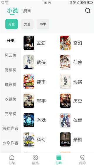 提供了男生女生,左边栏还分榜单:阅读榜、风云榜、推荐榜等等,任你随心选。