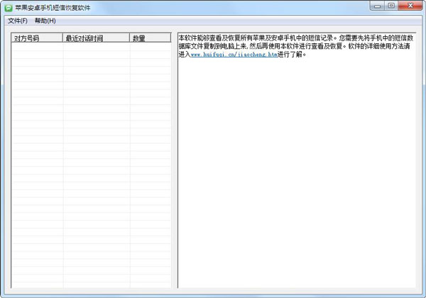 苹果安卓手机短信恢复软件能够查看及恢复所有苹果及安卓手机中的短信记录。软件能够恢复所有苹果手机及安卓手机上不小心删除的手机短信,支持所有iPhone手机及安卓手机。您需要先将手机中的短信数据库文件复制到电脑上来,然后再使用本软件进行查看及恢复。