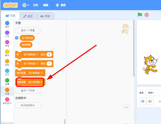 首先打开Scratch3.0中文版,点击主界面右侧的【变量】按钮;