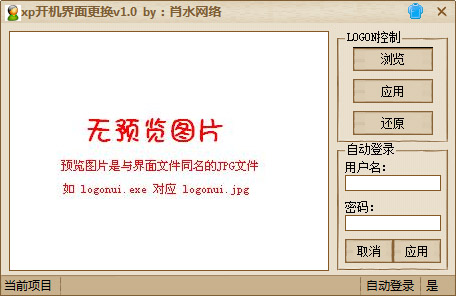 您是否厌倦了xp的开机画面,那么这款肖水网络xp开机界面更换软件可以帮你摆脱。