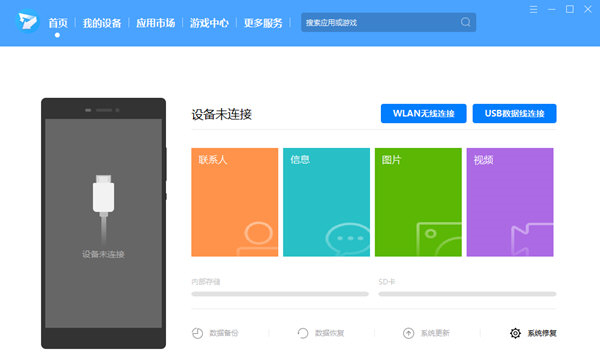 备份与恢复:设备上的数据可备份至电脑,支持联系人、短信、应用程序、音乐、通话记录、Email、日程的备份,可将已备份数据恢复至设备。