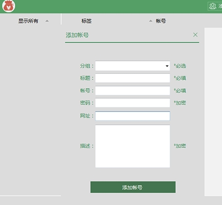 有密氏是款非常可靠的密码管理工具,采用三大加密措施,不会被轻易窃取的,软件是完全不联网的,所有的密码记录数据都是存储在本地的,根据密码来源进行分类管理,查找方便,从而解决用户多个密码密保容易记混的问题,软件界面简洁,通过四大杀毒软件检测,没有任何广告插件,永久免费,安装、卸载都挺方便的。