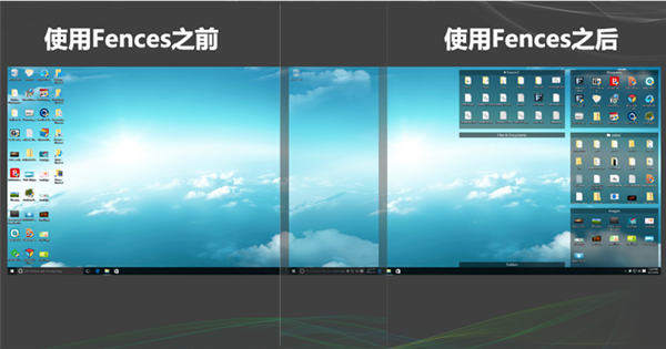 自定义各种图标在桌面上排列方式的规则,Fences会根据规则自动将新图标分类到您选择的围栏中。