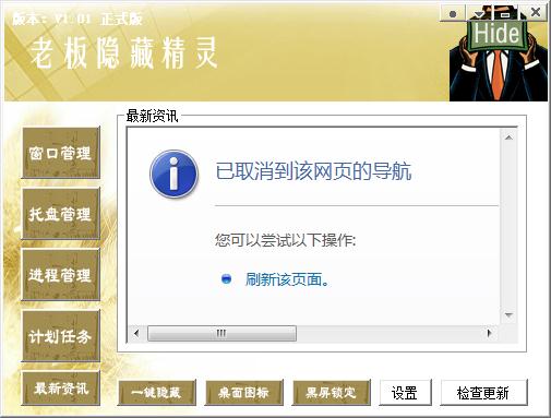 老板隐藏精灵是一款绿色免费的进程隐藏工具,可以将你电脑中正在运行的程序一键隐藏,同时也能够进行系统中的工具栏隐藏,还能够实现众多系统程序、软件的隐藏效果,支持隐藏整个任务栏、黑屏锁定、自定义功能快捷键等功能,防止其他人查看,有效的保护个人隐私,非常适合在办公室电脑使用。