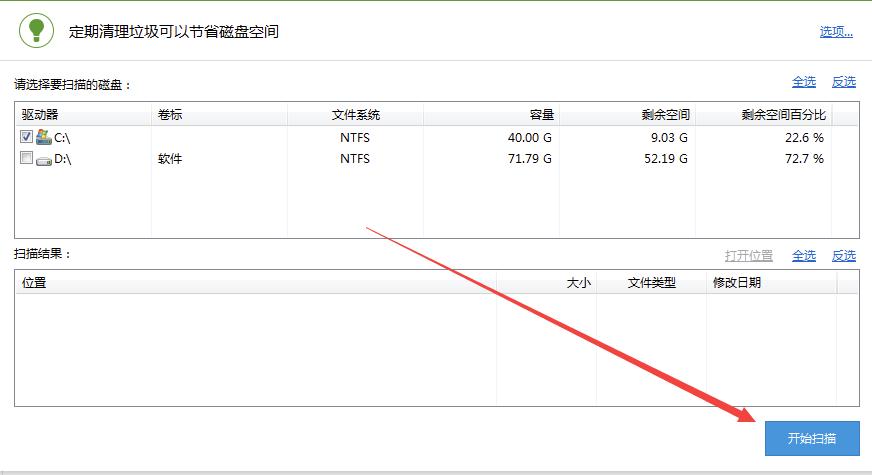 1、一键清理:能够清理系统垃圾、浏览器缓存、视频缓存、音乐缓存等。