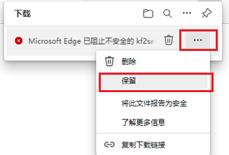 确定是正规网站后点击三个小点,点击‘保留’,然后点击“仍然保留”就可以下载了。