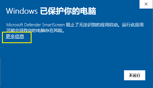 解压出安装文件,安装时可能会提示“Windows已保护你的电脑”提示,只有一个“不运行”按钮,