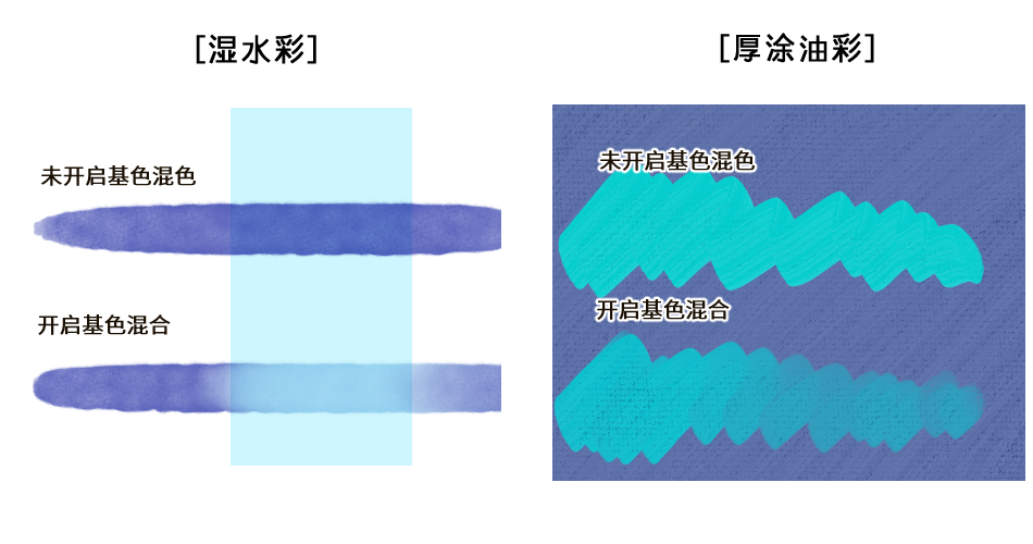 “双重笔刷”功能,可以组合2种描画效果进行绘制。“双重笔刷”支持“基色混合”,新增混色功能“叠色”。