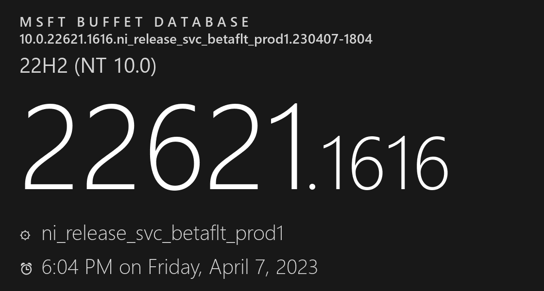 Build 22624.1616 = 推出新功能。
