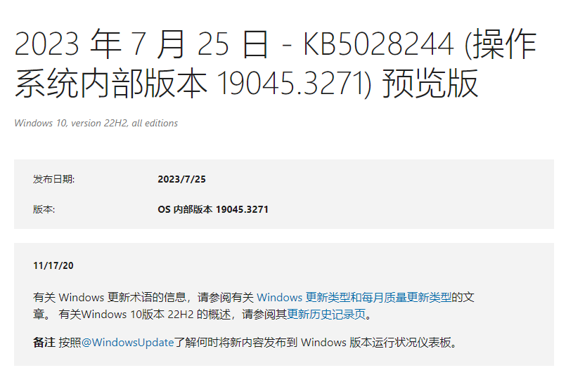 Win10 22H2 KB5028244是微软最新推出的七月更新补丁,安装之后即可升级至19045.3271。不仅解决了玩游戏时可能会影响计算机的问题,还解决了影响搜索应用的问题。除此之外,还有更多质量改进,有需要的用户快来下载吧。