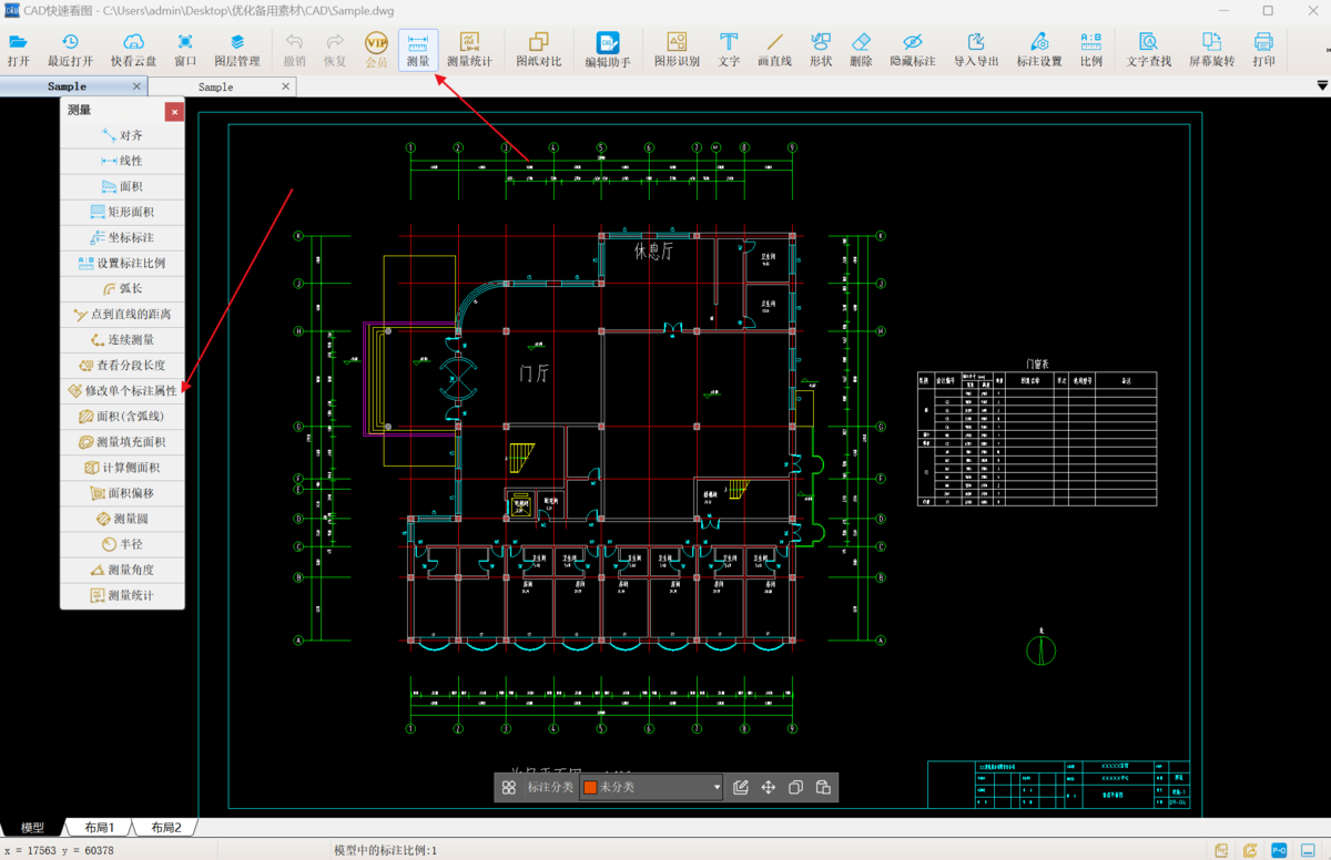 点击测量--修改单个标注属性。鼠标放在测量结果上,会高亮显示测量范围。