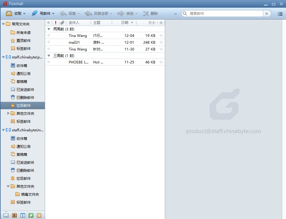 3、强大的附件管理:在邮件发送和接收时,可以针对附件进行快捷预览和管理,并自动过滤病毒和垃圾文件。