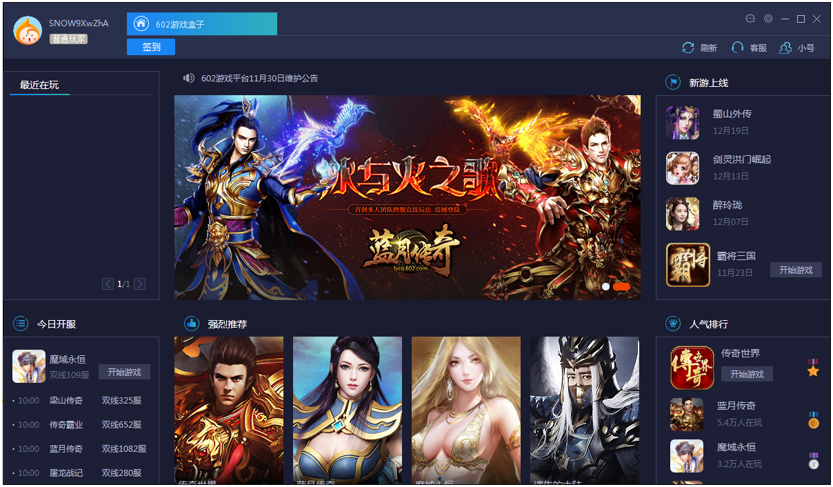 602游戏盒子网罗《传奇世界》、《蓝月传奇》等热门网页游戏,不用下载点击就玩。还能经验加成、小号多开、闹钟提醒、一键隐藏等,助你称霸全服。