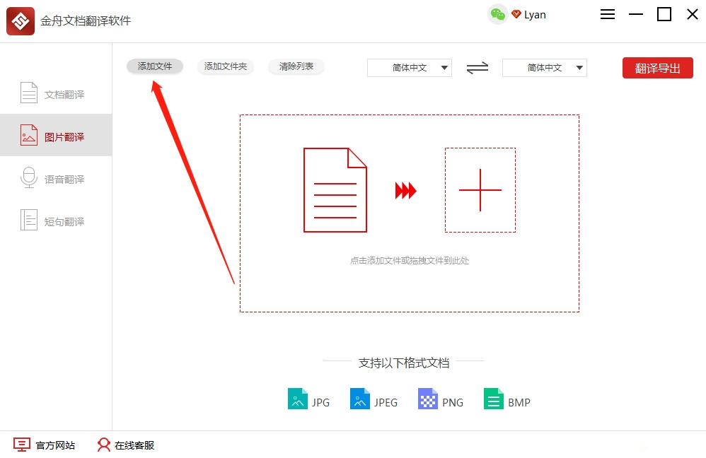 第二步、其次,再点击“添加文件”将需要翻译的图片上传到软件中。