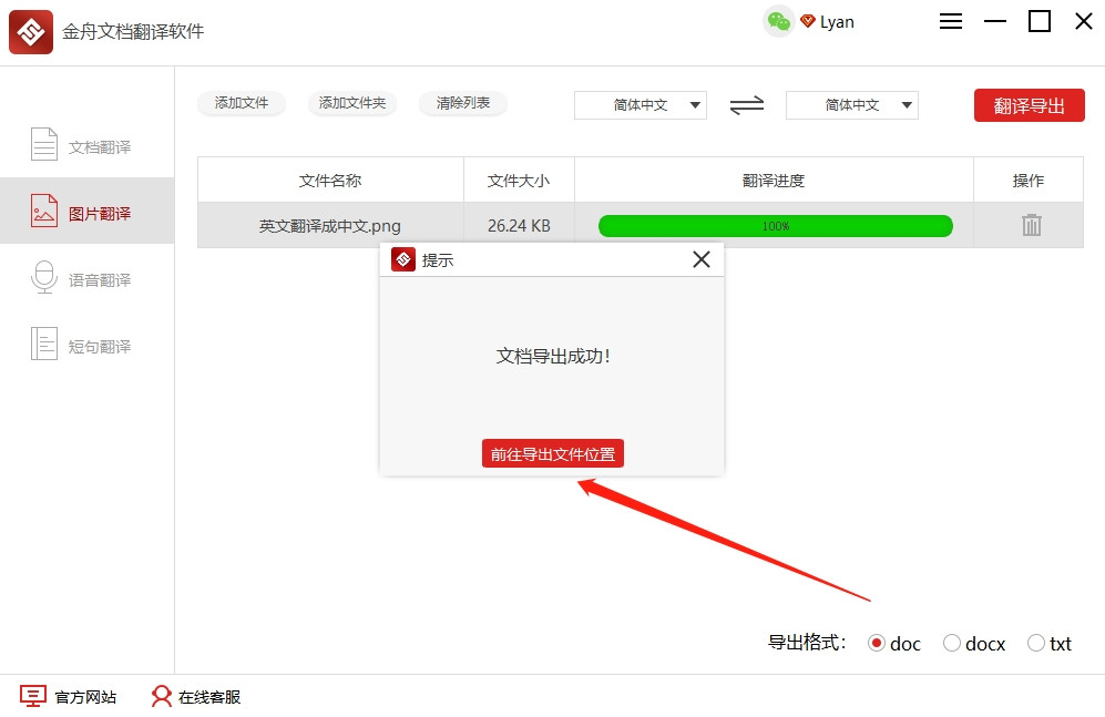 第七步、翻译成功后,点击“前往导出文件位置”就可以。