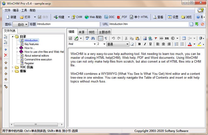 WinCHM Pro 是一款非常好用的chm制作软件,它整合全功能的所见即所得的html编辑器,无需外部文字处理器需要,用户可以通过这款软件快速方便地创建chm帮助文件。