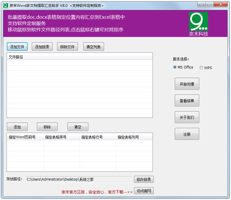 奈末Word多文档提取汇总助手可以帮助用户批量提取Word文档指定位置中的内容汇总到一个Excel表格中,支持doc以及docx文件格式,一键即可轻松提取汇总,简单易用。
