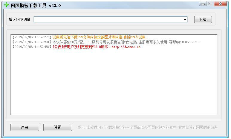 1、使用简单易学易用:无需复杂的设置,只要输入目标网页URL,即可下载对应页面以及包含的各种元素,比如图片、JS、CSS;