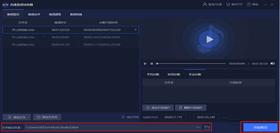 迅捷音频转换器为广大用户提供了非常便捷的音频剪切功能,包括了平均分割、时间分割、手动分割等,我们可以对音频进行合理的剪切,选择自己需要的音频片段。
