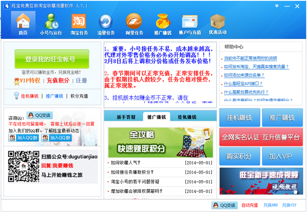 永久免费使用淘宝刷收藏精灵软件采用积分制度,对所有会员永久免费使用,推荐使用本软件将会奖励丰厚的积分。