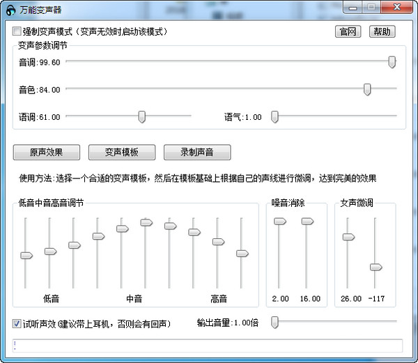 1、选择合适的声音模板,在模板的基础上根据自己的声音微调,边听边调。