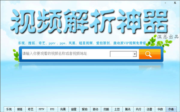 支持以上视频网的免费视频及VIP视频解析,支持以下视频网的免费视频解析。