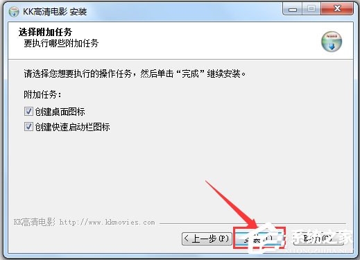 6、安装完成,选择运行KK高清电影播放器,点击完成