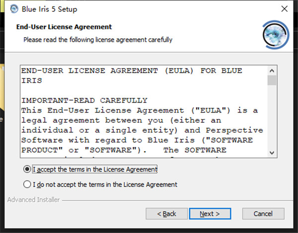 2、双击blueiris.exe安装,勾选我接受许可证协议条款。