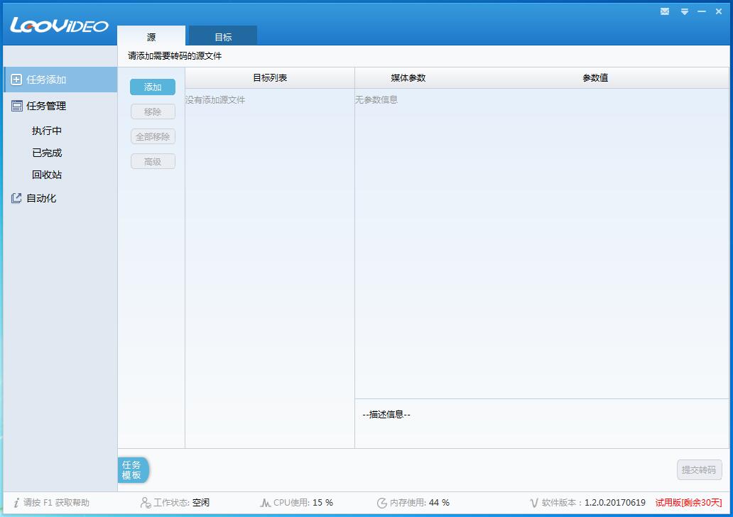 第二步:源文件添加后,任务添加目标项会闪动,提醒添加目标信息,点击目标项的添加按钮,