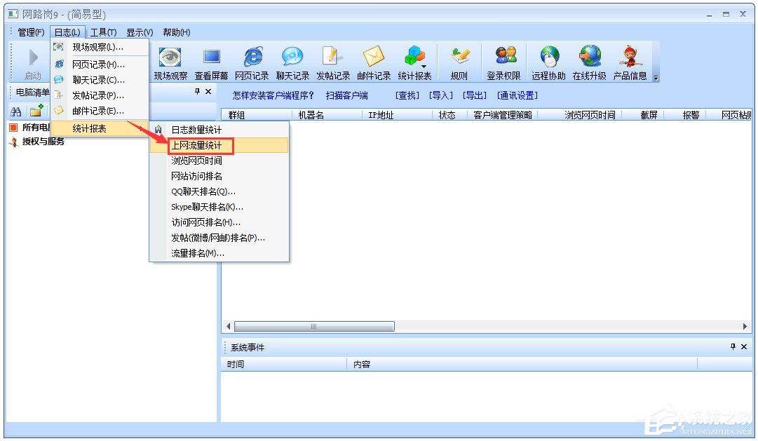 9、上网流量统计。