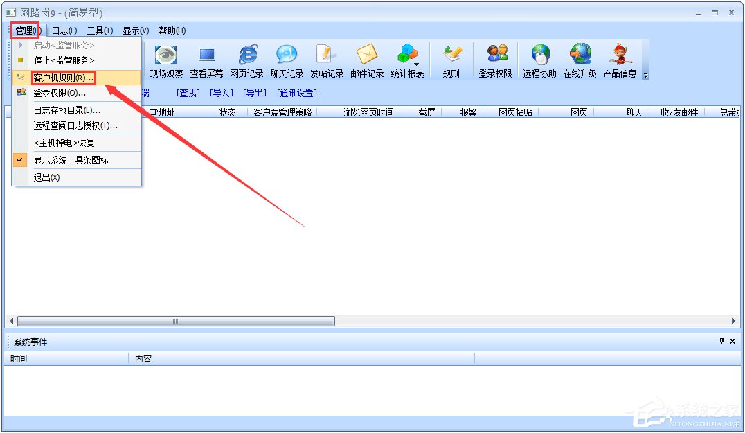 网路岗破解版界面友好,看起来整洁,操作起来方便,用户可以在规则设定里设置各种限制,在菜单栏的日志里查看各种记录如发帖记录等。本软件还有远程协助功能。