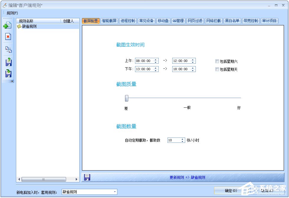 5、增加内网管控截屏规则,可以针对不同的电脑,不同的组设置不同的截屏规则,控制客户端电脑的截屏更加灵活。